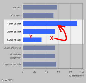 Het is evident dat jongeren sociale media meer gebruiken dan ouderen. Zie het plaatje van het CBS (X en Y komt zo). Maar, let op, de ouderen over u! Ze maken een behoorlijke inhaalslag. Dat ouderen niks met internet hebben, is net zo een onzin als dat jongeren niet geloven. Alleen de omstandigheden zijn anders, de kloof is er wel degelijk. Ouderen hebben nooit geleerd met computers om te gaan; dat levert een drempel op. Jongeren groeien er mee op en ze zijn er dus mee verweven. Ergo, jongeren doen veel meer met internet en sociale media dan ouderen. Dat mag geen verrassing heten.